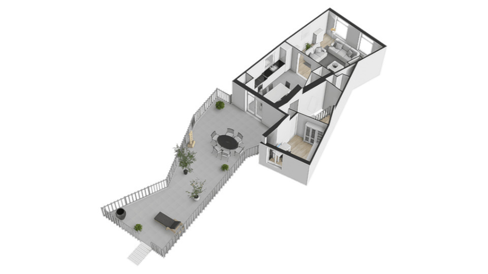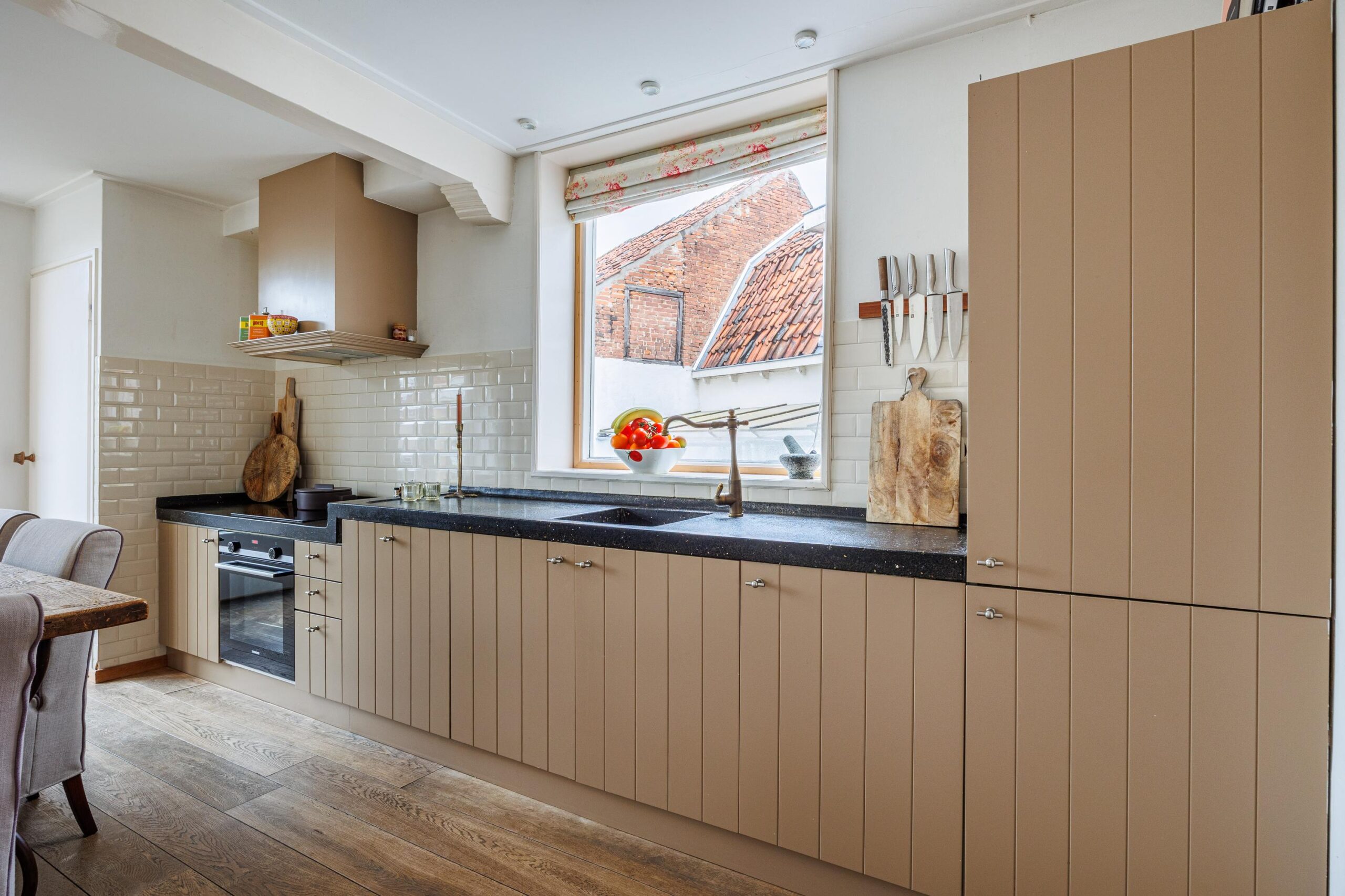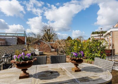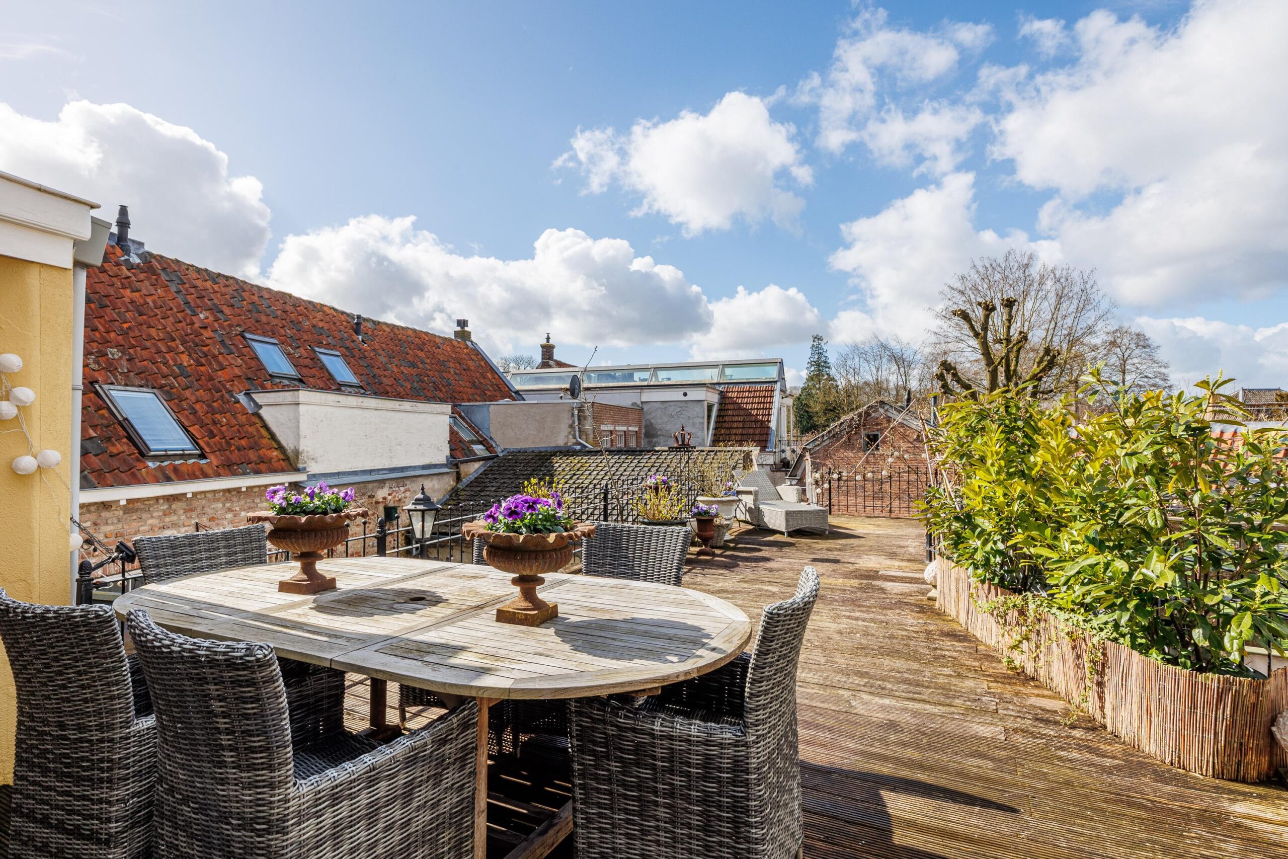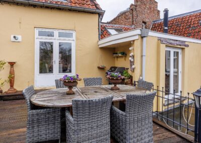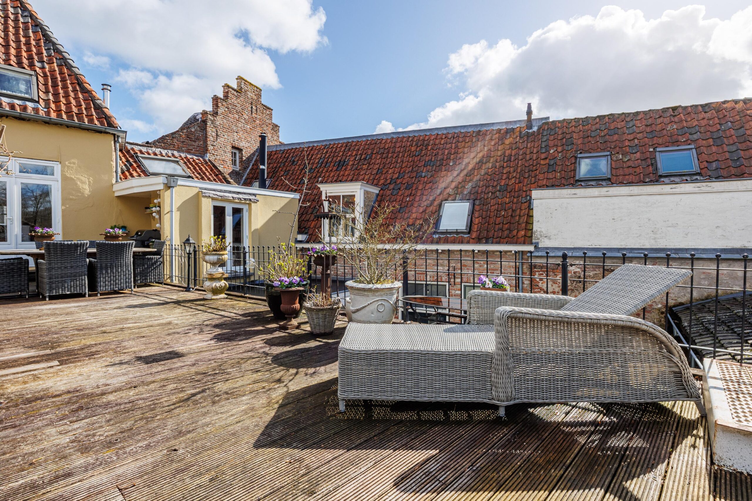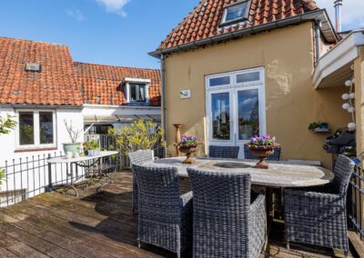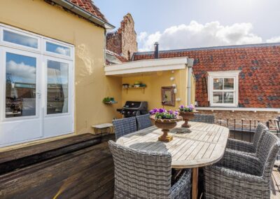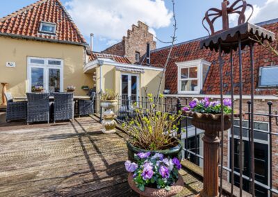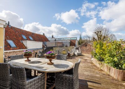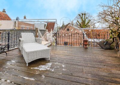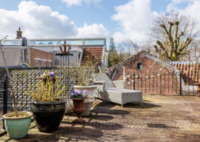 De openslaande deuren geven direct toegang tot het dakterras van maar liefst 55.8m², waardoor binnen en buiten op een natuurlijke manier in elkaar overlopen. Een fijne plek om in alle rust te genieten van een kop koffie of een lange zomeravond. Hier is volop ruimte voor een grote eettafel, loungehoek of zelfs meerdere zitplekken en toch midden in de historische binnenstad van Wijk bij Duurstede.