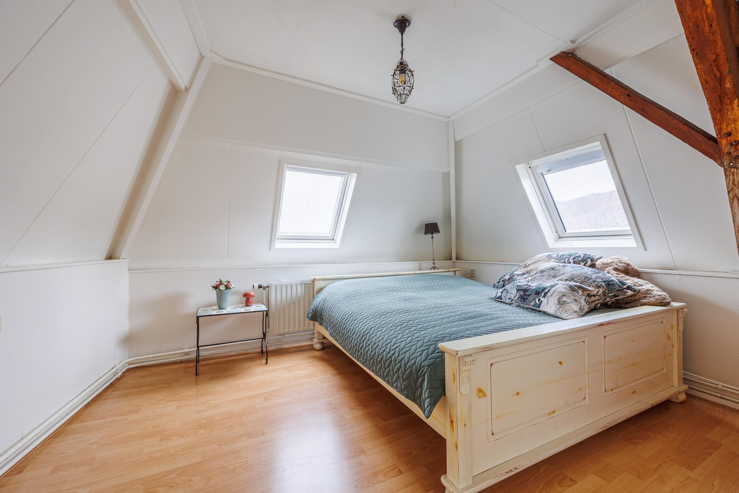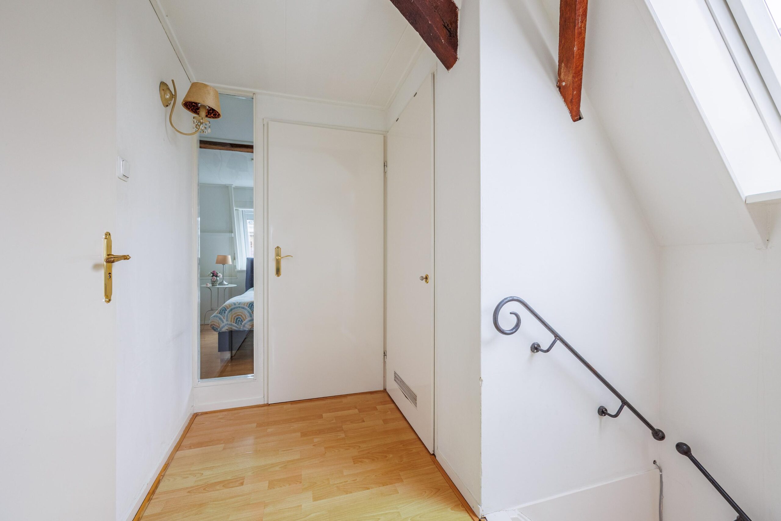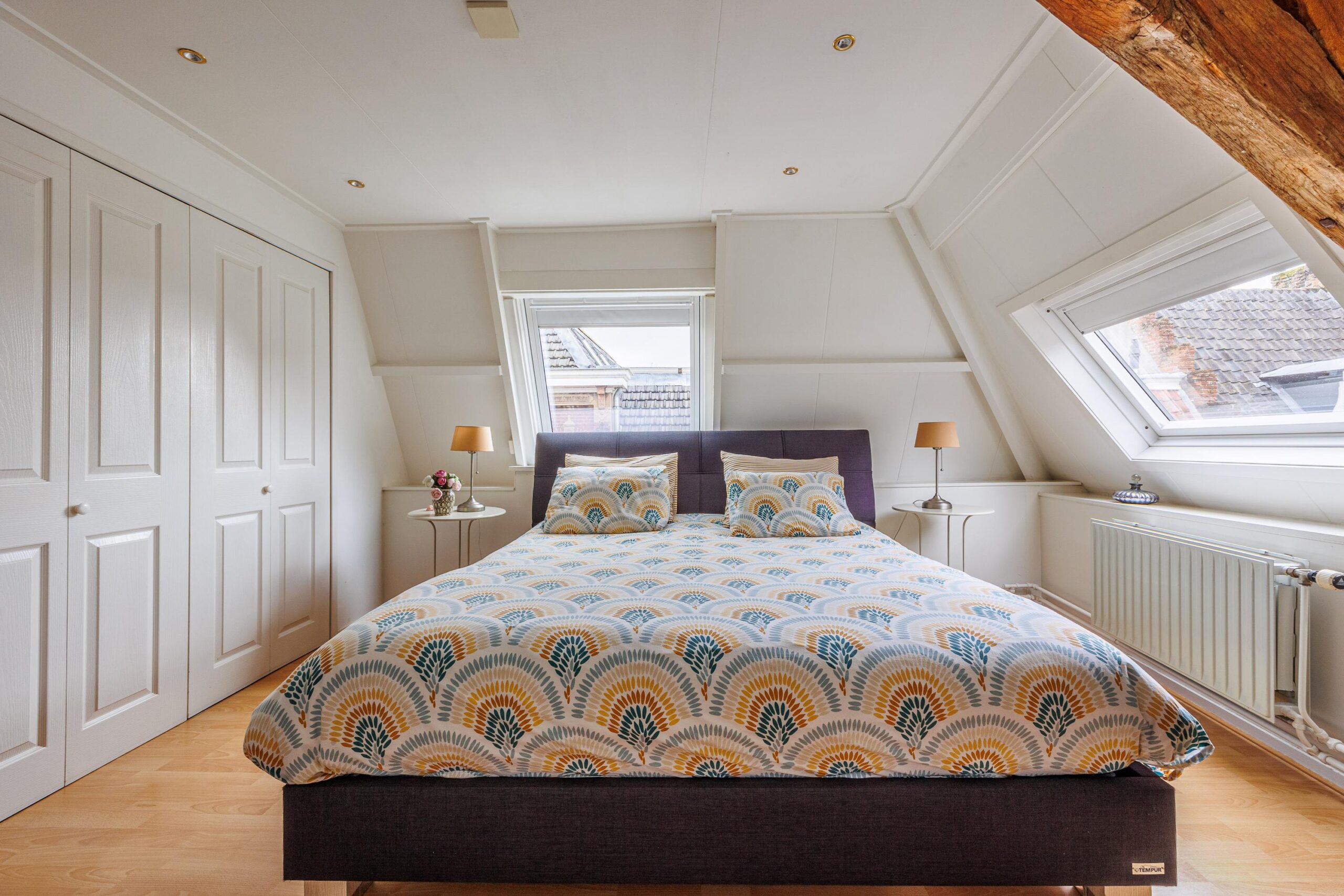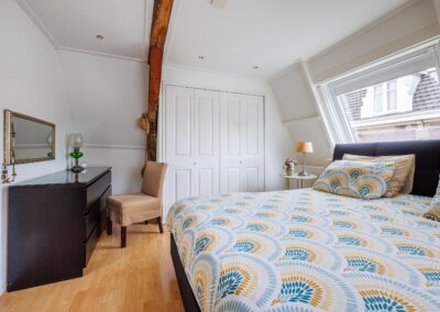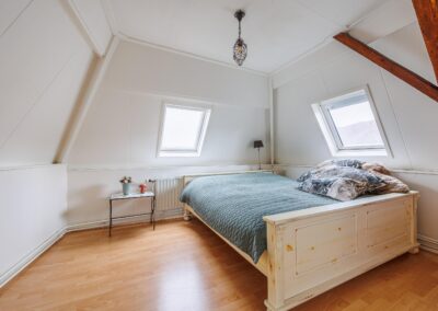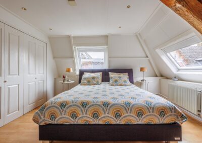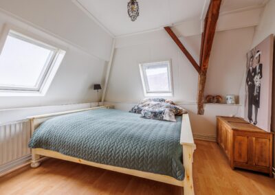 Beide slaapkamers zijn licht dankzij twee dakramen per kamer. Eén van de kamers beschikt over een vaste kast. De authentieke zichtbare balken zijn in beide kamers behouden gebleven en zorgen voor extra sfeer en karakter.