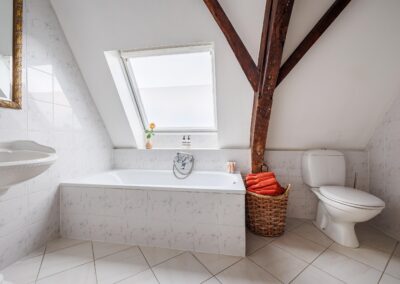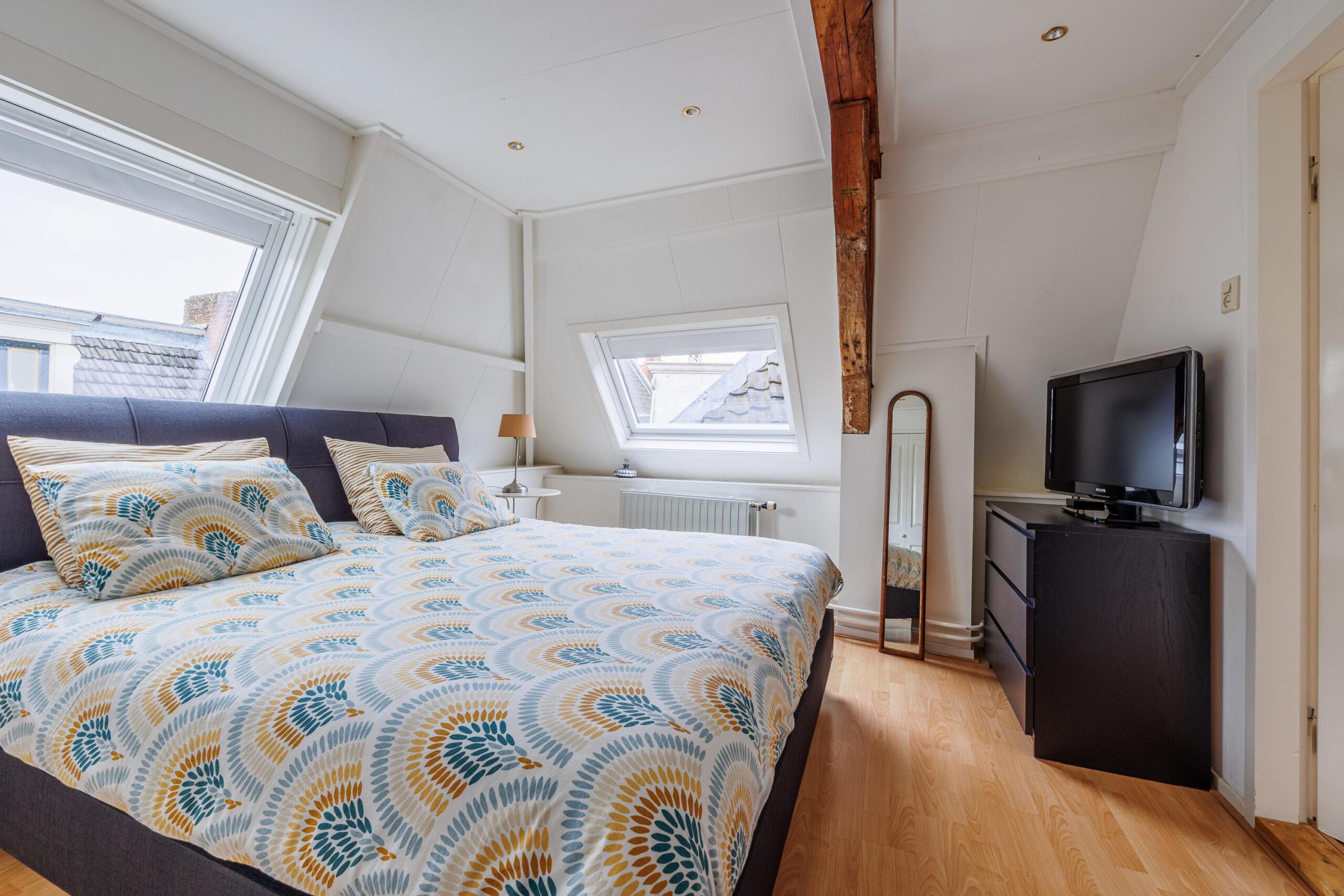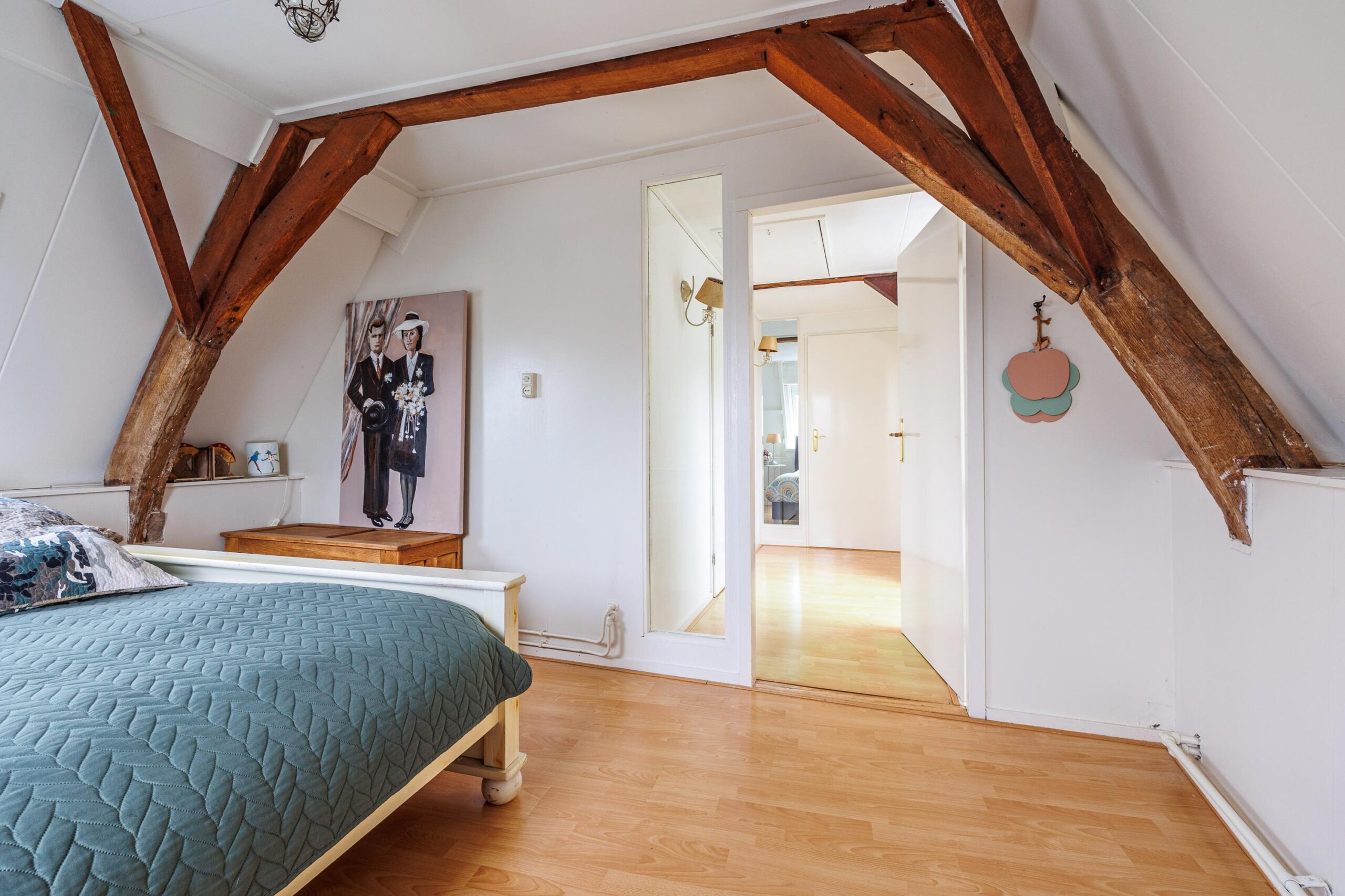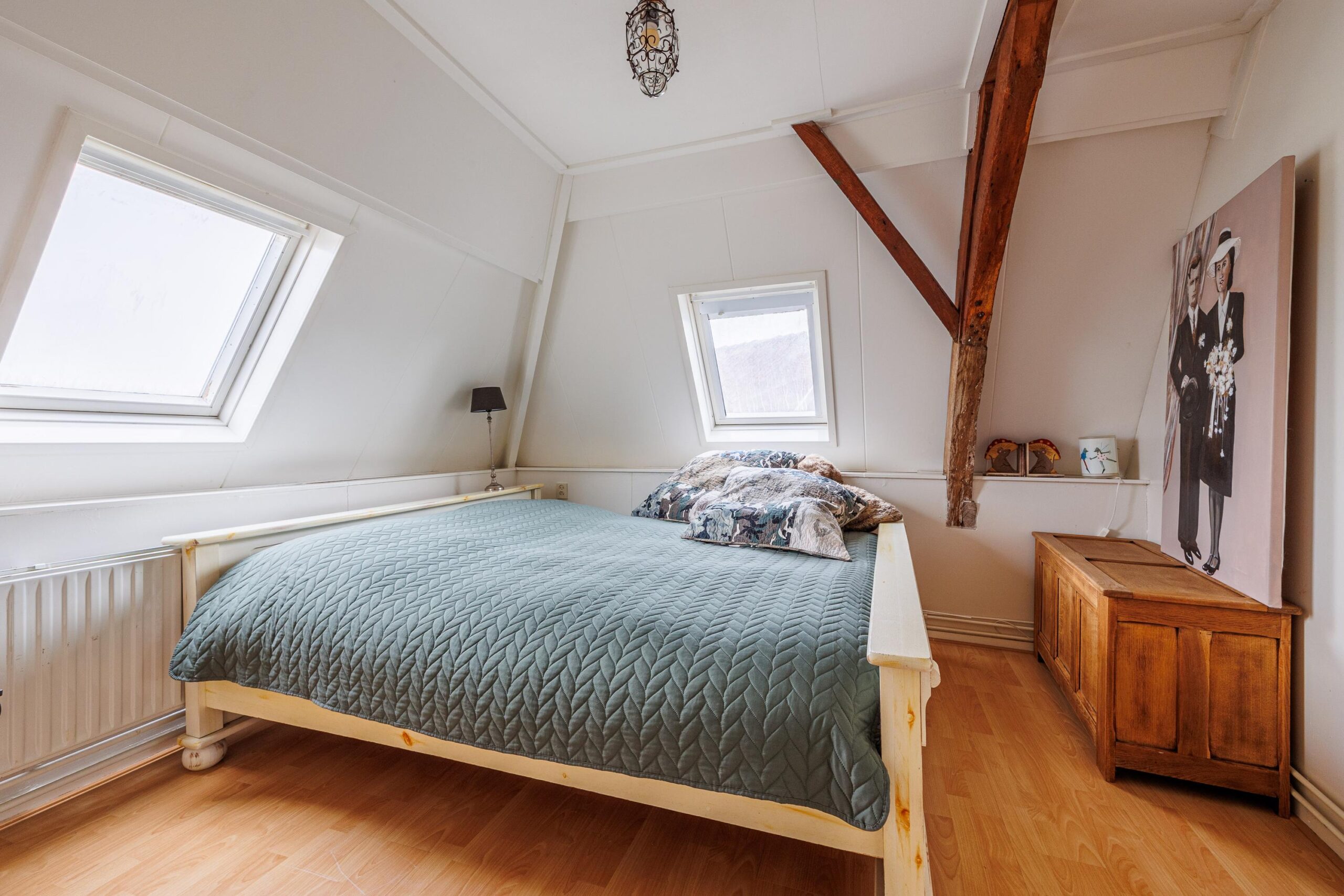 Beide slaapkamers zijn licht dankzij twee dakramen per kamer. Eén van de kamers beschikt over een vaste kast. De authentieke zichtbare balken zijn in beide kamers behouden gebleven en zorgen voor extra sfeer en karakter.