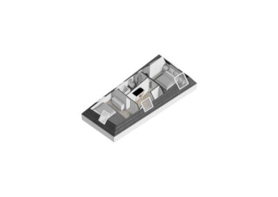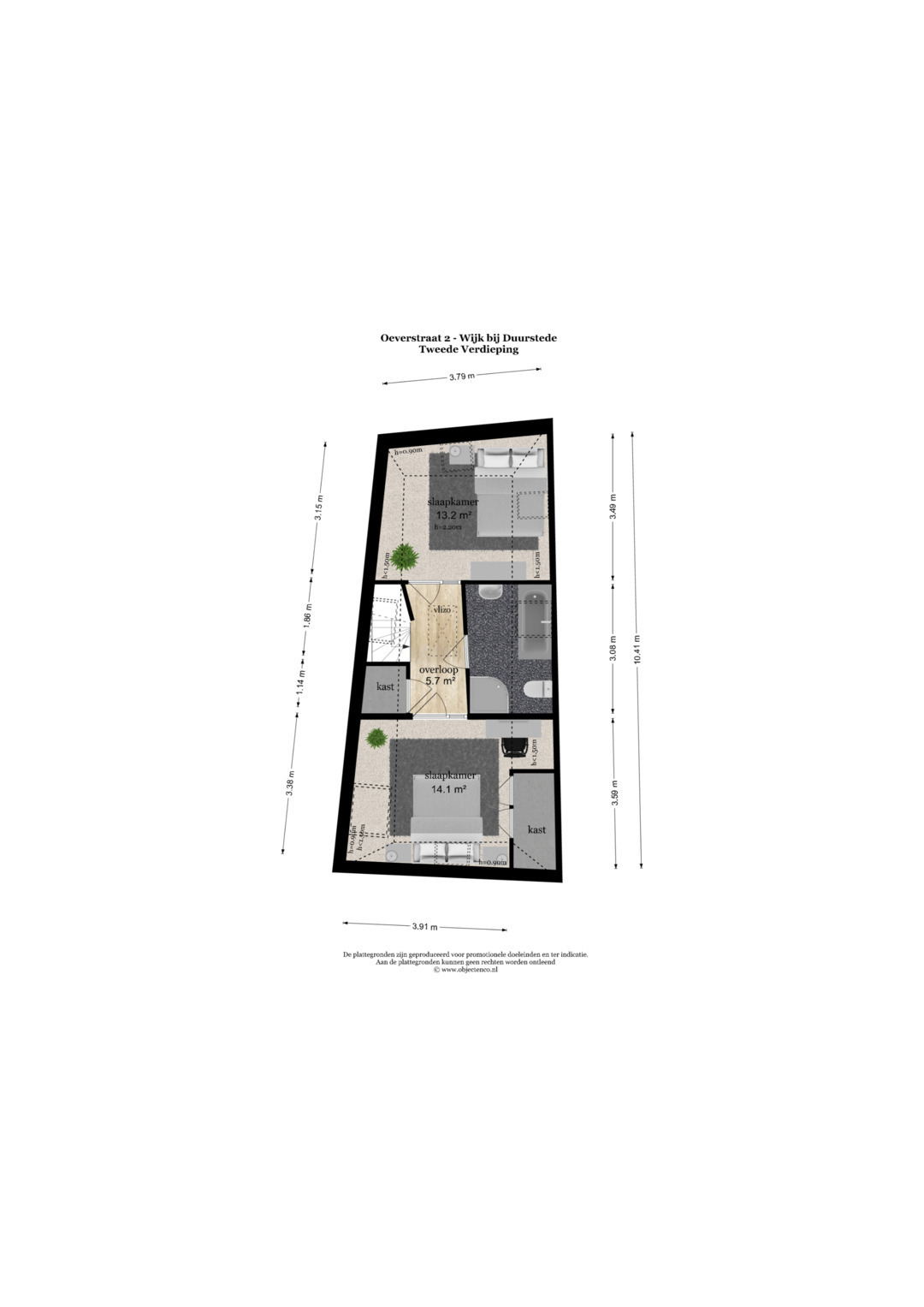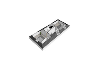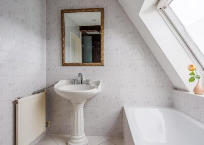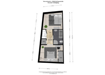 Tweede verdieping: Via de vaste trap in de keuken bereik je de tweede verdieping. Hier bevinden zich twee slaapkamers van 14.1m² en 13.2m² en een complete badkamer van circa 6m². De badkamer is ingericht met een ligbad, douchecabine, toilet en wastafel, waardoor deze verdieping van alle gemakken is voorzien.