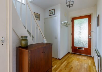 De woning heeft een woonoppervlakte van 103 m², verdeeld over 2 woonlagen. Op de begane grond bevindt zich een ruime lichte woonkamer met uitbouw openslaande deuren naar de tuin en een dichte keuken. Op de eerste verdieping zijn 4 slaapkamers en sanitaire voorzieningen. Via vlizotrap is de bergvliering bereikbaar. Er is een ruime oprit naast het huis geschikt voor 3 auto’s en aansluitend een diepe, stenen garage (22,7 m²) met aansluitend een schuur (9,1 m²) voorzien van elektra en radiatoren. De garage is ideaal voor de hobbyist of voor werken-aan-huis.