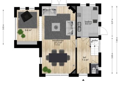 – De aanbouw aan de woonkamer geplaatst in 1993, volledig geisoleerd.