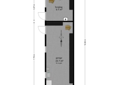 Vrijstaande stenen garage en schuur: 22,7 en 9,1 m²