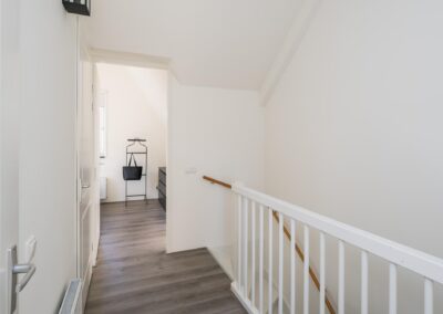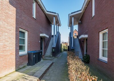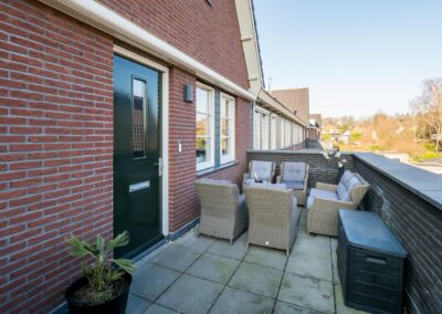 ENTREE via de buitentrap naar de voordeur op de 1e verdieping. Hier bevindt zich het heerlijke balkon met een mooi groen uitzicht.