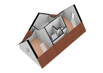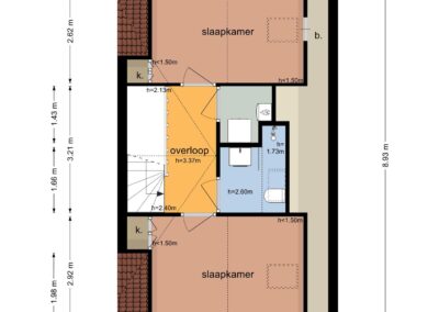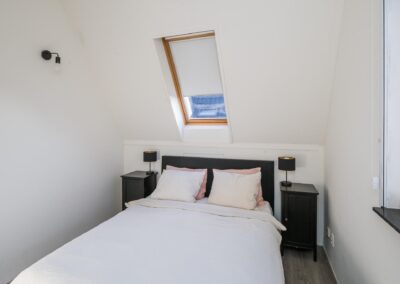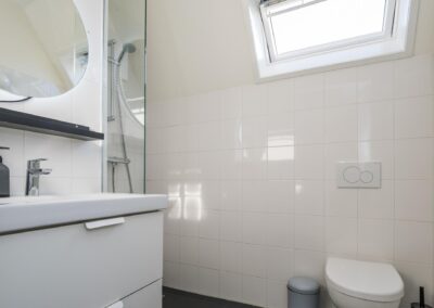 overloop, 2 slaapkamers van 11 m² en 10 m² beide met dakramen, vaste kasten, een badkamer ingericht met inloopdouche, 2e toilet en vaste wastafel en een kamer met de wasmachineaansluiting.