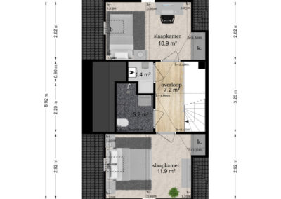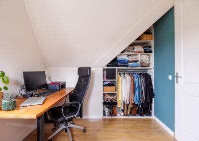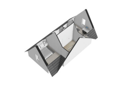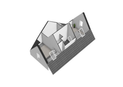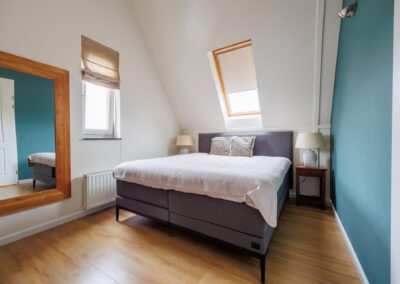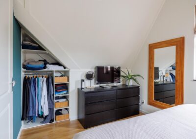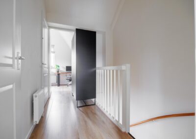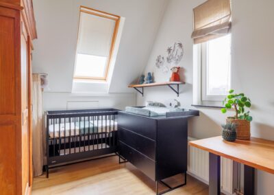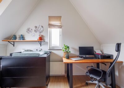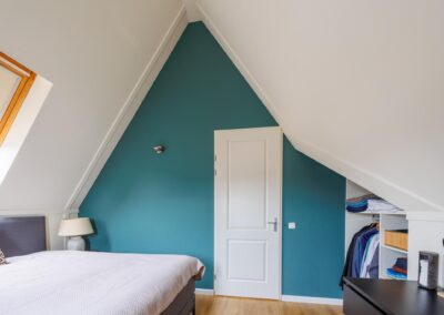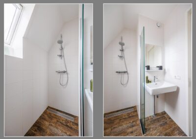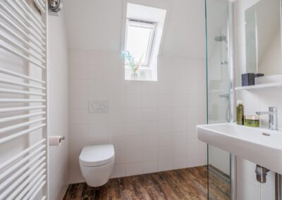 Overloop, 2 slaapkamers van 12 m² en 11 m² beiden voorzien van dakramen en inbouwkasten. Badkamer ingericht met inloopdouche, 2e toilet en vaste wastafel en designradiator. Daarnaast een berging met de wasmachineaansluiting en CV-ruimte.