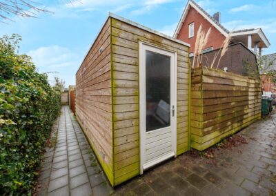 Er is aan de achterzijde van het appartement een separate, houten privé berging met elektra aanwezig, ideaal om de (elektrische) fietsen te stallen.