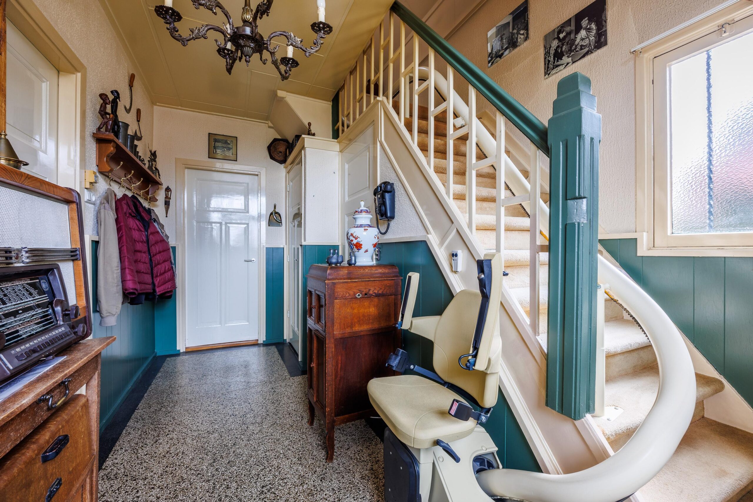 Met een woonoppervlakte van 112 m², verdeeld over twee verdiepingen, biedt het huis een prettige indeling. Op de begane grond vindt u een lichte woonkamer met erker, aansluitend het ruime eetgedeelte. De vele raampartijen geven het geheel een ruimtelijk en licht gevoel. Dit huis heeft fraaie details, zoals de originele granieten vloer in de hal, de fraaie trap. Op de begane grond is ook een slaapkamer aanwezig. Aan de achterzijde van het huis ligt de keuken, een fijne plek om uitgebreid te koken. Vanuit hier is ook de toegang tot de overkapping tussen het woonhuis en de garage.