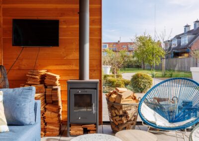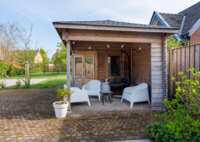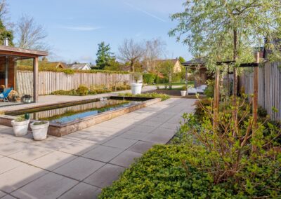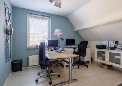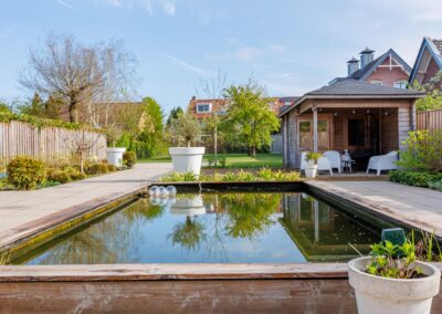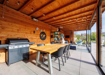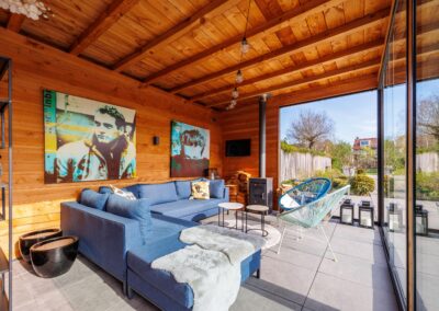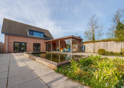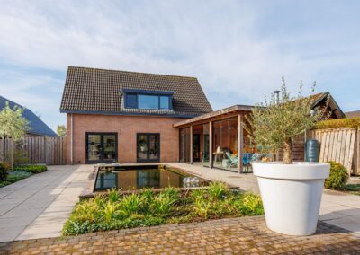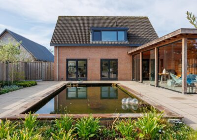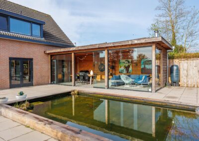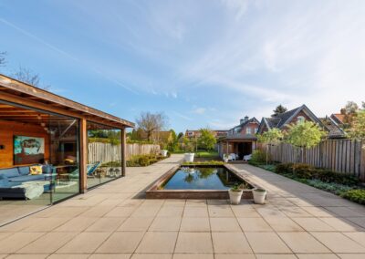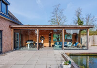 Bij aankomst in de achtertuin word u verwelkomd door een fraai aangelegde, diepe tuin met een strakke vijver. De moderne tuinkamer met glazen schuifwanden en een houtkachel maakt het buitenleven compleet – een perfecte plek om in alle seizoenen te genieten van je tuin. Of je nu houdt van binnen genieten of buiten leven – deze woning biedt het beste van beide werelden. Laat je verrassen door de hoogwaardige afwerking, het gevoel van ruimte en de rust die deze plek uitstraalt.