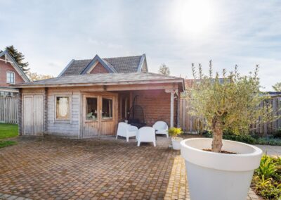 Tevens staat er nog een luxe houten berging met een serre en een overkapping in de tuin. Deze berging is ideaal om tuingereedschap in op te bergen.