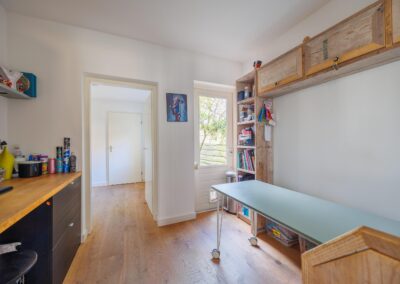 ENTREE, hal, meterkast, toiletruimte, toegang tot inpandige garage, toegang tot woonkamer met aansluitend eetgedeelte. Open keuken met eiland voorzien van opbergruimte en diverse apparatuur zoals 5-pitsgasfornuis, Quooker kraan, vaatwasser, wijnklimaatkast, losstaande koel-vriescombinatie. Toegang kelder(kast). Hobbyruimte die kan dienen als kantoor, slaapkamer of speelkamer. Wasruimte/berging met CV. met toegang naar de garage. Openslaande deuren vanuit woonkeuken keuken naar de tuinkamer. Woonkamer heeft ook toegang naar het terras en de achtertuin.