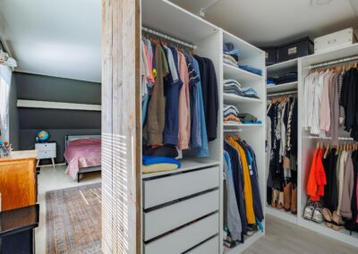 De eerste etage is voorzien van drie slaapkamers, waarvan de master-bedroom voorzien is van de droom van iedere vrouw, namelijk een royale inloopkast!