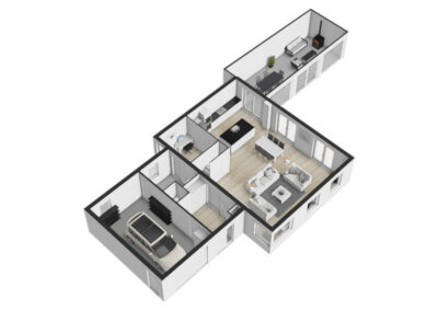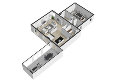 Uniek aan deze woning is de mogelijkheid om – tegen een meerprijs –een volledig afgewerkte appartement(en) én/of één casco woning met eigen tuin en huisnummer bij te kopen en of werkplaats. Ideaal voor dubbele bewoning, bijvoorbeeld met (volwassen) kinderen, mantelzorg voor uw ouders of als guesthouse. Ook geschikt voor verhuur of werken aan huis. Deze extra eenheden maken deze woning tot een zeldzame kans voor wie zoekt naar ruimte, privacy én flexibiliteit in woonvormen. Appartement 1 circa 71 m², appartement 2 circa 63 m², casco woning circa 60 m².