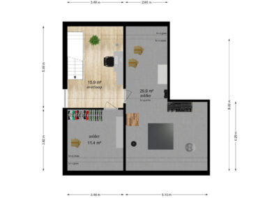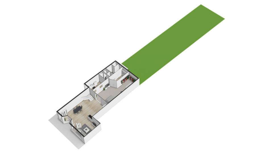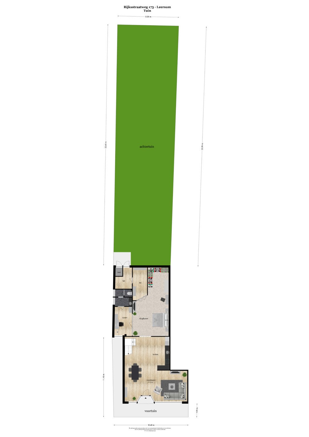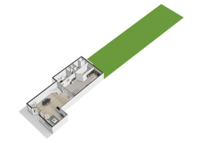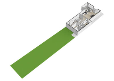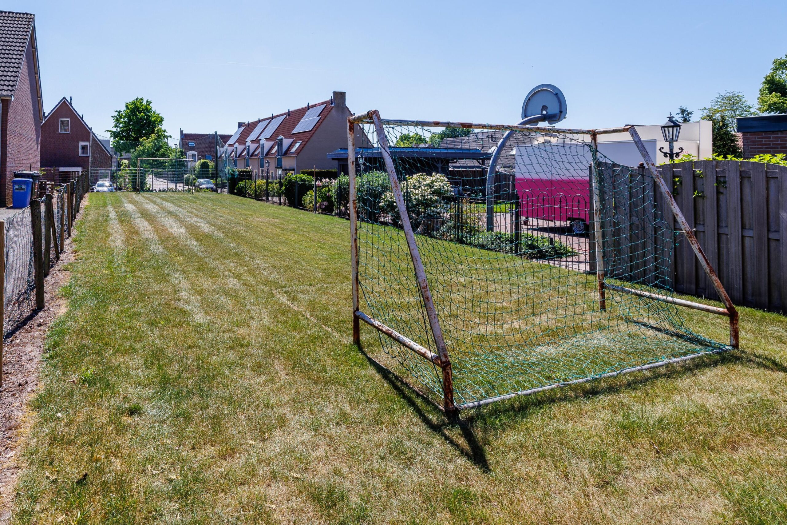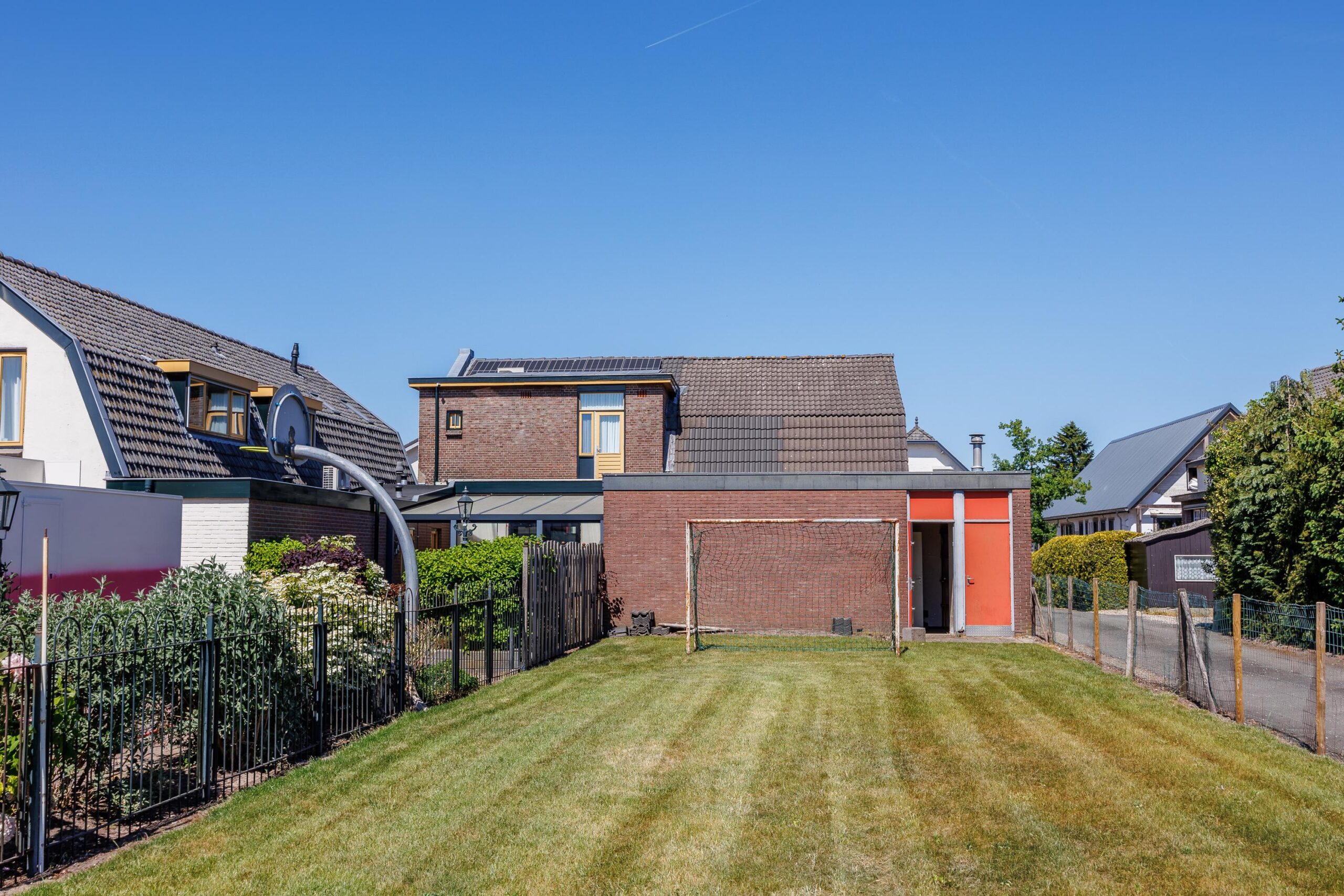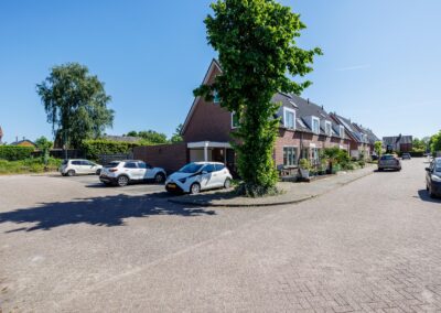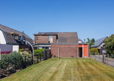 De diepe achtertuin op het zuiden vormt een waardevol extra: volop zon en ruimte, ideaal voor tuinliefhebbers of verdere uitbreiding (uiteraard binnen de gemeentelijke kaders). Het perceel grenst achter aan de parkeerplaatsen van De Smidse.