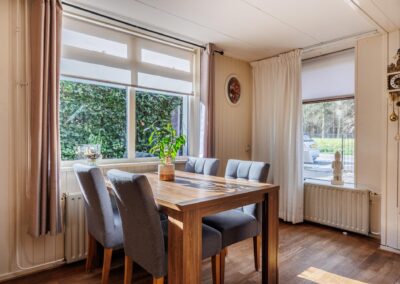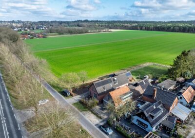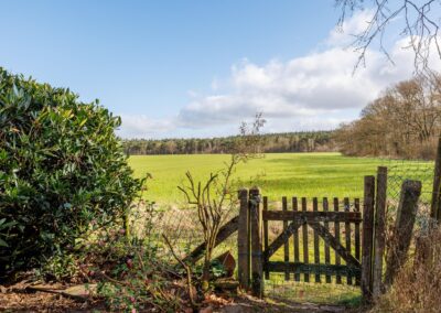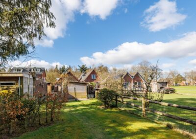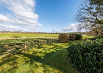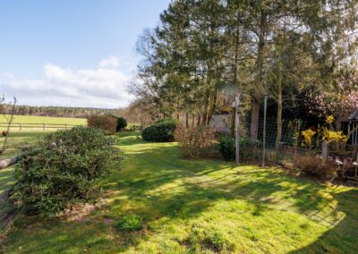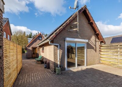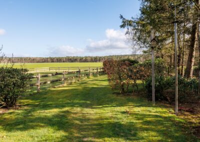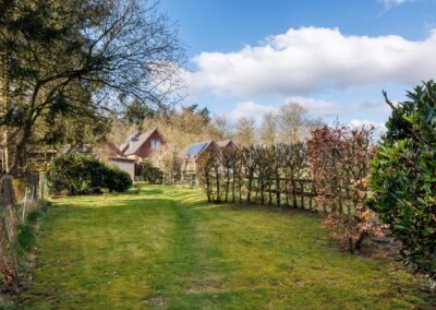 Het is hier heerlijk genieten met vrij uitzicht en doordat de woning rondom tuin heeft zijn er verschillende zon- en schaduwplekken te creëren. Achterin de tuin bevindt zich een hekwerk die privé toegang geeft richting het bos. Hier word je ’s ochtends wakker met vogelgezang en sluit je de dag af met een wandeling door het bos, direct vanuit je achtertuin.