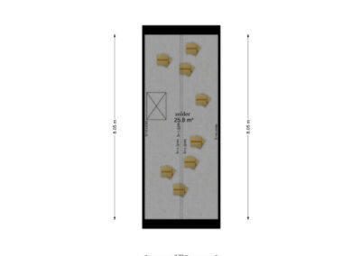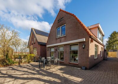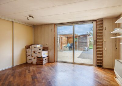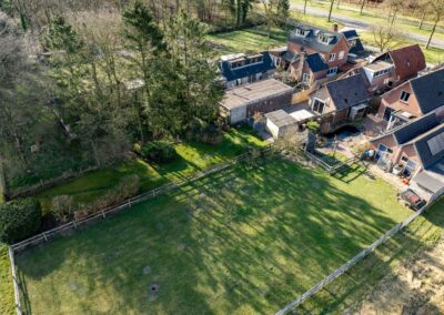 De diepe achtertuin is gelegen op het noordoosten. Een tuin die voelt als een klein weiland! Hier geniet je niet alleen van de ruimte en rust, maar kun je ook écht iets doen met je groene vingers. Of je nu droomt van verse eieren van je eigen kippen, een paar geitjes die vrolijk rondhuppelen, of een moestuin vol zelfgekweekte groenten en fruit, het kan hier allemaal.