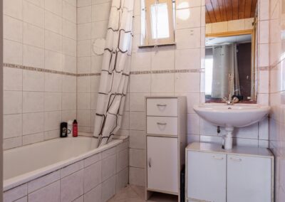 ENTREE, hal, halfopen keuken voorzien van opbergruimte en diverse apparatuur. Woonkamer. Gang, wasmachine-aansluiting, toegang naar de badkamer, die uitgerust is met een ligbad en wastafel. Separate toiletruimte. Bijkeuken met toegang tot de achtertuin. Kelder.