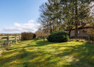 Het is hier heerlijk genieten met vrij uitzicht en doordat de woning rondom tuin heeft zijn er verschillende zon- en schaduwplekken te creëren. Achterin de tuin bevindt zich een hekwerk die privé toegang geeft richting het bos. Hier word je ’s ochtends wakker met vogelgezang en sluit je de dag af met een wandeling door het bos, direct vanuit je achtertuin.