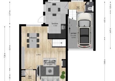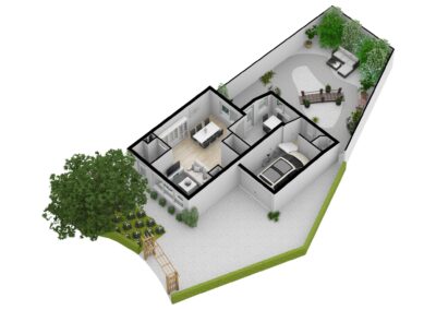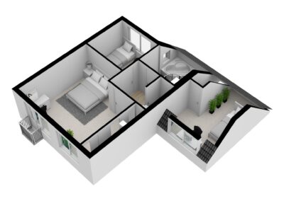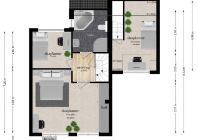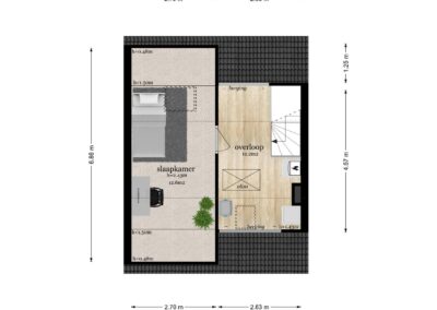– De hoofdslaapkamer aan de voorzijde van de woning kan gesplitst worden naar 2 slaapkamers.