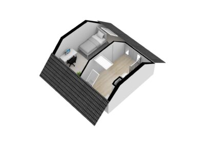 Boven de garage bevindt de derde slaapkamer van circa 11,4 m² met dakkapel.