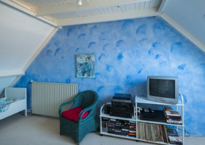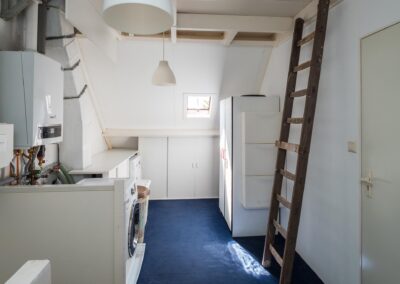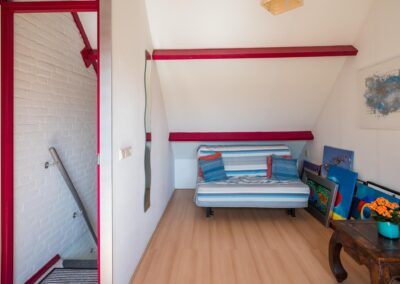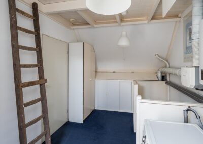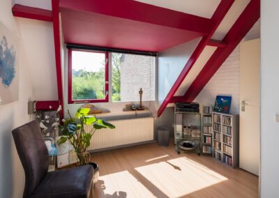 Vaste trap, overloop met dakraam, cv-opstelling en wasmachine-/droger aansluiting. Toegang tot de vierde slaapkamer van circa 12,6 m². Tevens is er bergruimte achter de knieschotten en op de bergvliering.