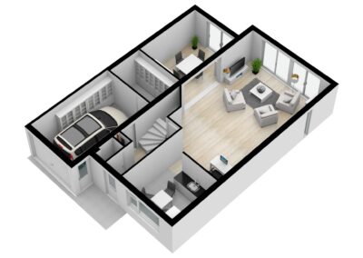 In de extra berging zijn al aansluitingen voorbereid voor een eventuele badkamer en een slaapkamer kan door een deel van de woonkamer af te scheiden. Hiermee biedt het huis de mogelijkheid tot levensloopbestendig wonen.