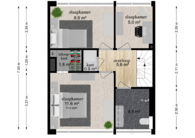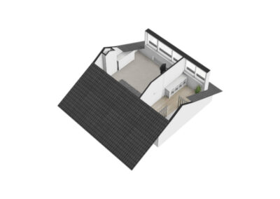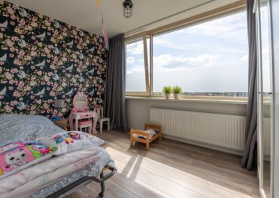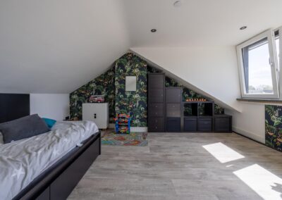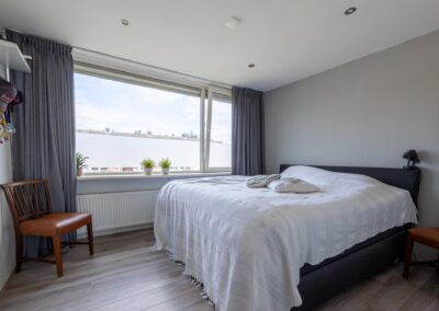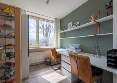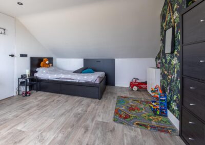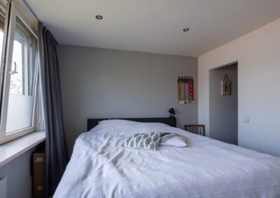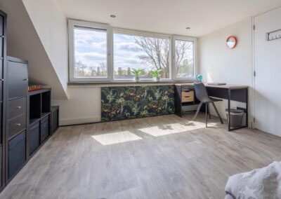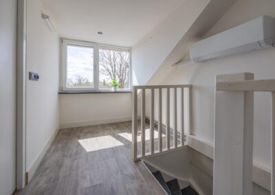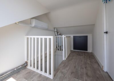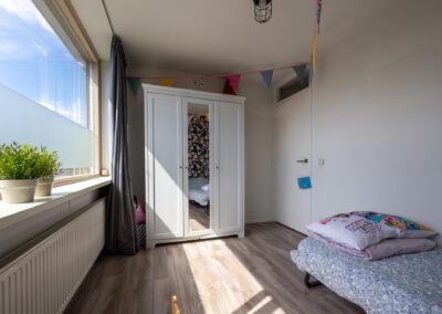 De tweede verdieping is tevens te bereiken met een vaste trap en hier bevindt zich de 4e ruime slaapkamer met een brede dakkapel uit 2023 én airconditioning! Ook is er extra bergruimte aanwezig achter de knieschotten.