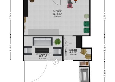 • Mogelijkheid met wat aanpassingen een carport of (dubbele) garage aan de achterkant van de woning te creëren (hofje met parkeergarages), vraag de gemeente voor de mogelijkheden (vergunningen)