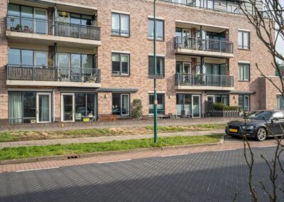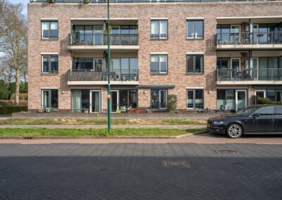 Het gebouw heeft een centrale entree met bellentableau/videofoon en brievenbussen, trapopgang en liftinstallatie. In de onderbouw is de separate 2e berging behorend bij dit appartement gelegen. Achter het gebouw is het parkeerterrein gelegen met een eigen parkeerplaats. Het appartement is naast de centrale entree ook rechtstreeks bereikbaar.