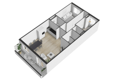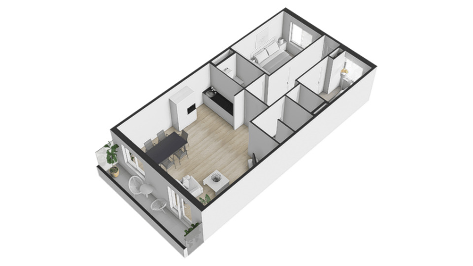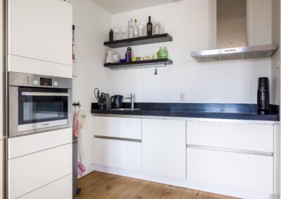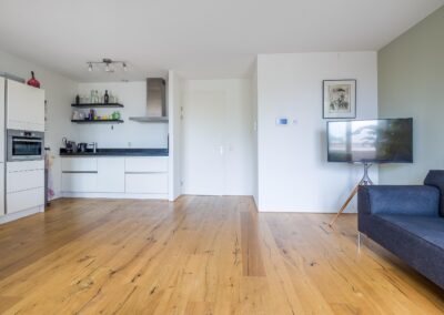 De ruime en lichte woonkamer is echt een eyecatcher. Dankzij de grote raampartij op het zuiden is er een zeer prettige lichtinval. De royale woonkamer (32,9 m²) en moderne open keuken vormen samen een sfeervolle leefruimte waar je kunt koken, eten en ontspannen in één gezellige ruimte. Via de openslaande deuren krijg je toegang tot een heerlijk balkon (6,4 m²) op het zonnige zuiden.
