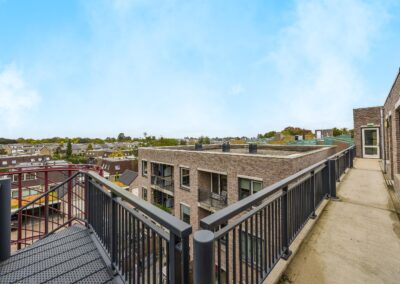 Het appartement op de hoogste woonlaag – de 3e verdieping: Vanaf de galerij toegang van het appartement. ENTREE, ruime hal met toegang naar 2 slaapkamers van 10,7 m² en 6,4 m². Eveneens toegang tot een separate toiletruimte met fonteintje en een betegelde badkamer ingericht met inloopdouche en wastafelmeubel. De woonkamer is door middel van een openslaande deur verbonden met het balkon. De keuken is modern en voorzien van inbouwapparatuur.