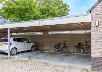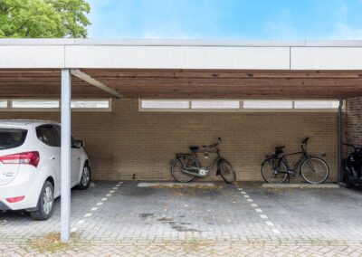 Op het buitenterrein van het gebouw zijn de privé parkeerplaatsen van de appartementen, waarbij deze woning een eigen carport (van 5 x 3 meter) heeft.