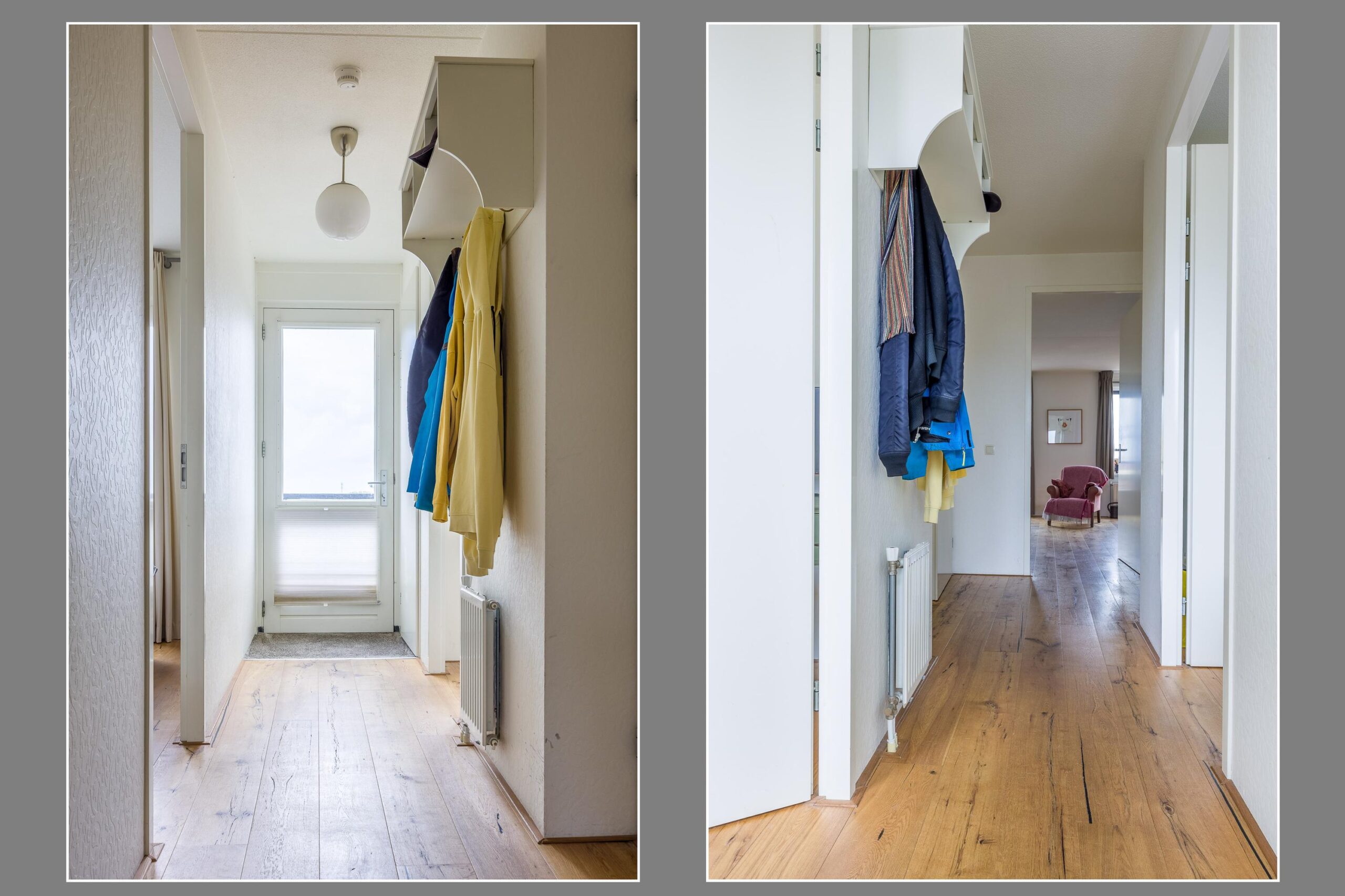 Begane grond: Via de afgesloten ENTREE met video-intercom en brievenbussen komt u in de centrale hal. Hier bevinden zich de lift naar alle woonlagen en het trappenhuis.
