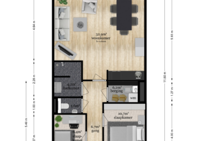 Daarnaast beschikt het appartement ook over 2 volwaardige slaapkamers (10,7 m² en 6,4 m²). Ideaal voor wie nét dat beetje extra ruimte zoekt. Of je nu een thuiskantoor wilt inrichten of een logeerkamer nodig hebt; je kan alle kanten op! In het souterrain is een eigen externe berging aanwezig.