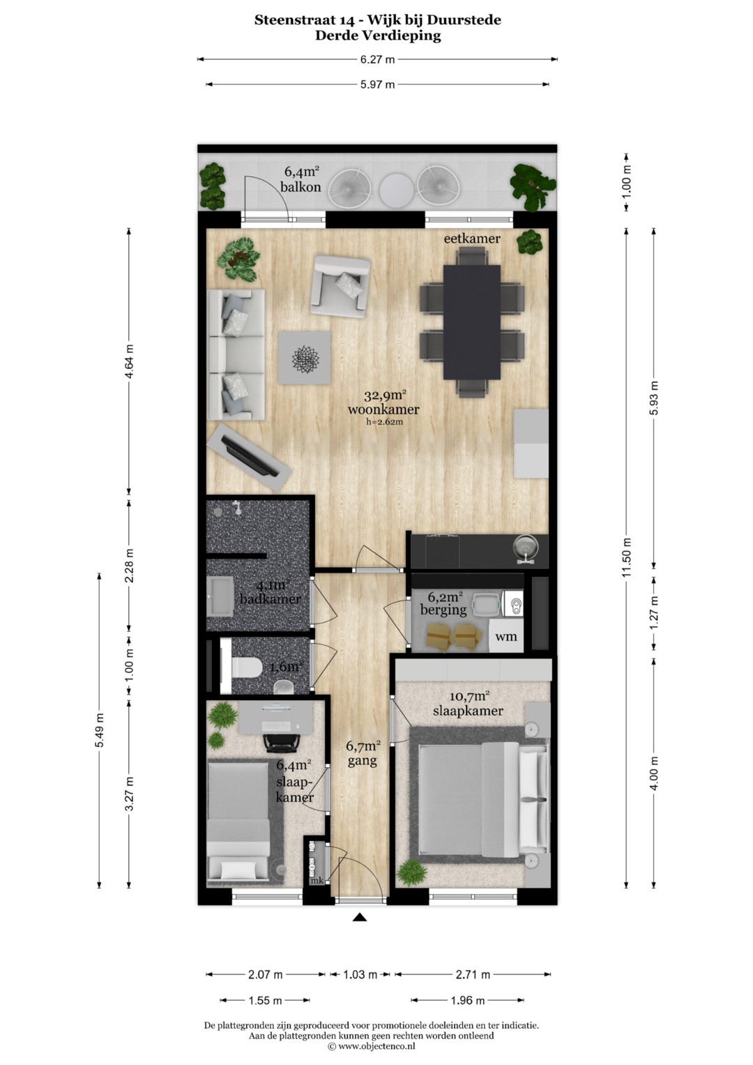 – 3 Kamers, waaronder 2 slaapkamers.