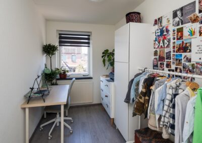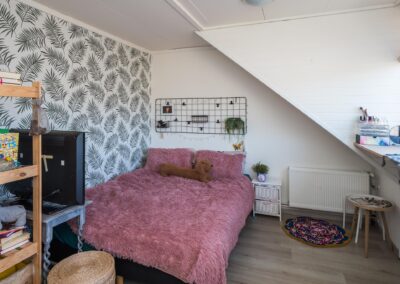 2e Verdieping: vaste trap naar de voorzolder met bergruimte, wasmachine-aansluiting, cv-opstelling en een ruime 4e slaapkamer van 14m² met een breed dakkapel.
