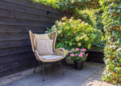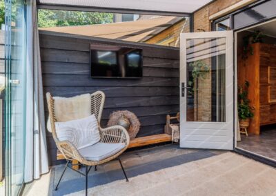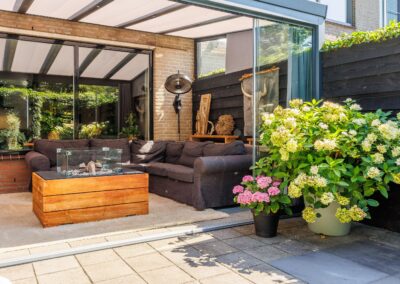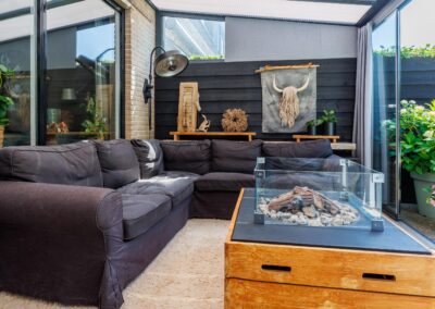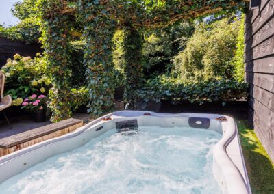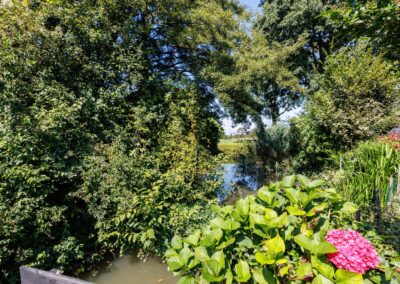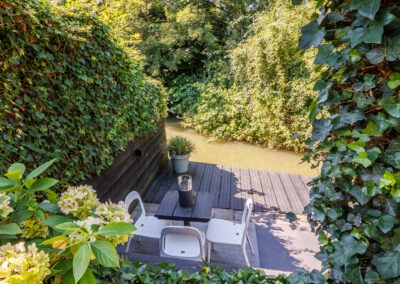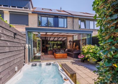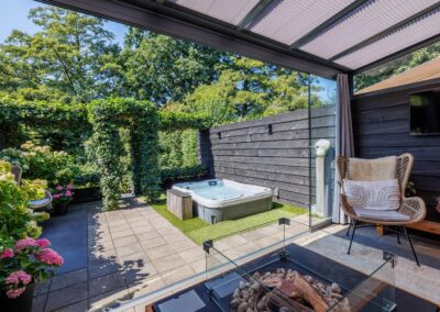 – Tuin aan het water met jacuzzi en serre annex tuinkamer;