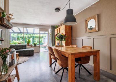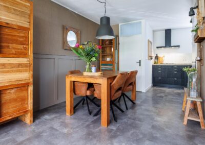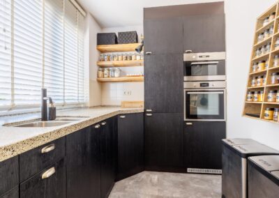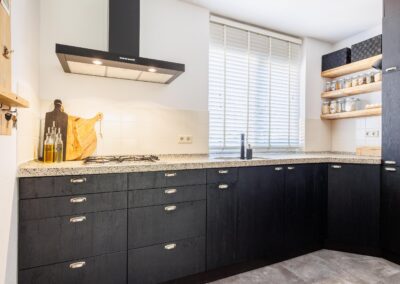 De keuken is gesitueerd in een L-opstelling en in 2021 gerenoveerd. Voorzien van vernieuwde fronten, nieuwe afzuigkap en moderne inbouwapparatuur. Aan de achterzijde bevindt zich een gezellige zithoek met een grote raampartij en toegang tot de tuin.