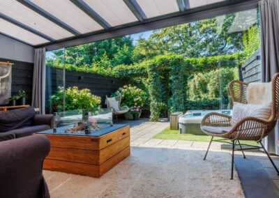 – Tuin aan het water met jacuzzi en serre annex tuinkamer;