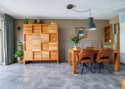 Entree met hal en meterkast. Vanuit hier stap je de royale woonkamer van ca. 34,2 m² binnen. In het hart van de kamer ligt het eetgedeelte met ruimte voor een grote eettafel. Dankzij de open keuken blijf je in contact met je gasten. De beneden verdieping is voorzien van vloerverwarming en er is een kruipruimte-/vloerisolatie gedaan.