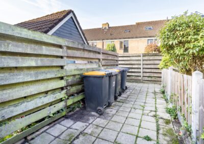 De zonnige achtertuin van 2020 is gelegen op het westen, loopt toe en is circa 11 meter diep beginnend met circa 6 meter breed en toelopend naar circa 1,5 meter. Achterin de tuin loop een (bij de tuin behorend) pad van 3,5 m lang naar de achter de tuin liggende brandgang (achterom). De tuin is fraai aangelegd in 2020 en biedt vooral middag en avond zonligging!
