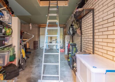 Naast het huis bevindt zich een garage van 20 m² met extra zolderverdieping (stahoogte) van 9 m². De garage heeft een overheaddeur aan de voorzijde en een tuindeur aan de achterzijde van het huis, alsmede inpandig bereikbaar. Ideaal als praktijk-/hobbyruimte of om te bouwen tot kantoor/studio aan huis.