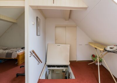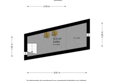 De kelder is te bereiken middels een vaste houten trap vanuit de badkamer en is 12,5 m² groot.