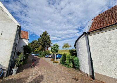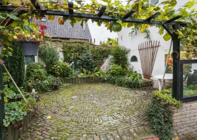– De aangrenzende tuin tegen de wal en de voortuin wordt gehuurd van de gemeente (huidige huurprijs € 16,95 per jaar, circa 220 m² kavelgrootte).