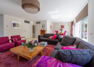 Royale ENTREE, hoge hal met vide, dit geeft gelijk een gevoel van ruimte! De hal is voorzien van een garderobe, toiletruimte en trap kast. De hal geeft je direct toegang tot de royale living van 58.5 m² met grote raampartij en goede licht inval. Deze prachtige ruimte heeft een mooie plek voor een grote eettafel zodat je goed kunt tafelen met meerdere mensen. Het zitgedeelte is voorzien van een open haard, waar men bij winterse dagen van een sfeervol vuurtje kan genieten! Aansluitend een mooie leeshoek/studieruimte. Deze leeshoek is een mogelijkheid voor het creëren van een werkkamer zonder geheel afgesloten te zijn van het gezinsleven. De ruim opgezette dichte keuken is in hoekopstelling en voorzien van diverse inbouwapparatuur van 9.5 m². Aansluitend aan de keuken is de bijkeuken met witgoedopstelling en een zijdeur naar de tuin /oprit. De gehele begane vloer is voorzien van travertin vloer.
