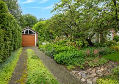 De vrijstaande garage is voorzien van een elektrische roldeur en elektra, dus ideaal om uw auto, motor of (elektrische) fietsen in te stallen. Er is een oprit op eigen terrein en tevens is er in de straat voldoende openbare parkeergelegenheid.
