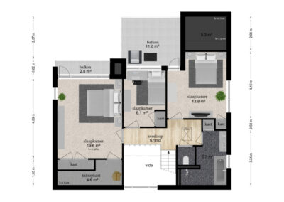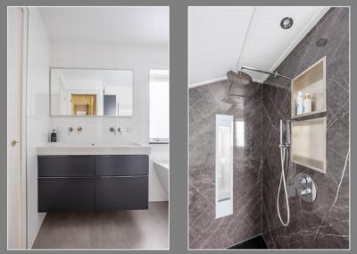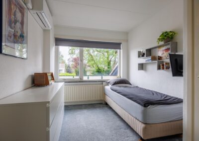 Overloop met toegang tot 3 ruime slaapkamers met inbouwkasten en allen een eigen airco-unit. De hoofdslaapkamer van bijna 20 m² heeft vaste kasten, een inloopkast van 4.6m² en een balkon met vrij uitzicht op de achtertuin. Een 2e slaapkamer heeft een eigen dakterras. De moderne badkamer van 2021 voorzien van een ligbad, sunshower en een dubbel wastafelmeubel. Er is separaat een moderne toiletruimte met luxe douchetoilet aanwezig op deze verdieping.