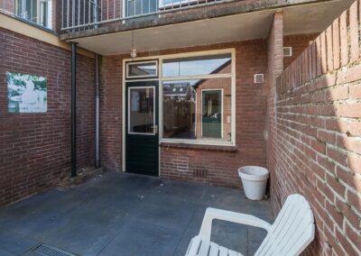 ENTREE met toegang tot de woonkamer van circa 16,2 m². Vanuit de woonkamer is er toegang tot de hal met toilet en trapopgang. De woonkeuken van circa 13,9 m², gesitueerd aan de achterzijde van de woning, is ingericht met moderne inbouwkeuken met inbouwapparatuur en vijf-pits gasfornuis. Vanuit de keuken bereik je de achtertuin. De volledig bestraatte tuin is voorzien van een ruime berging van circa 11,7 m² en een achterom. Aansluitend is er openbare parkeergelegenheid.