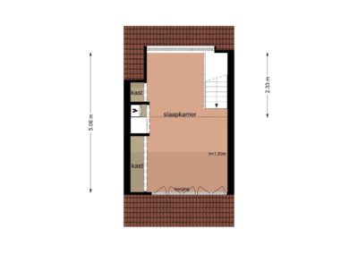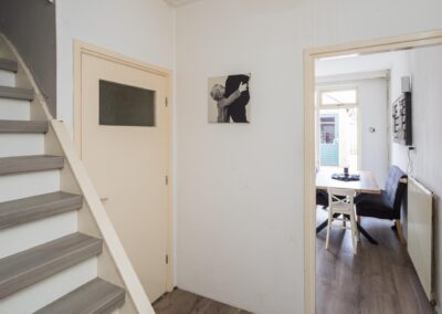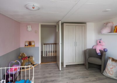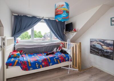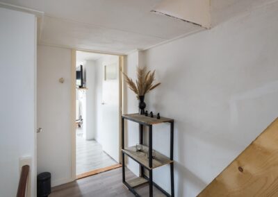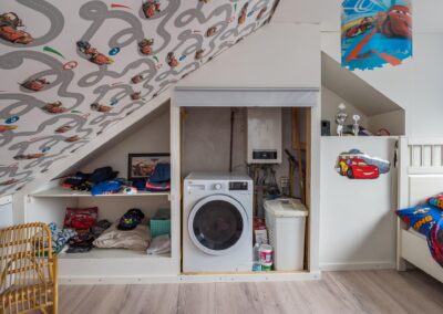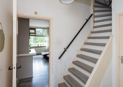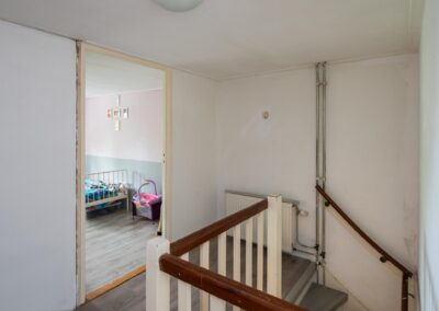 Vaste trap naar de zolderverdieping waar een 3e slaapkamer is gerealiseerd van circa 11,4 m² voorzien van dakkapel, cv-opstelling en wasmachine aansluiting.