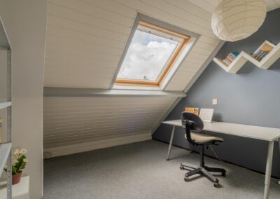 Het huis is gelegen op loopafstand van de speeltuintjes, scholen, kinderboerderij, opvang en nabij winkels, scholen, uitvalswegen en het openbaar vervoer.